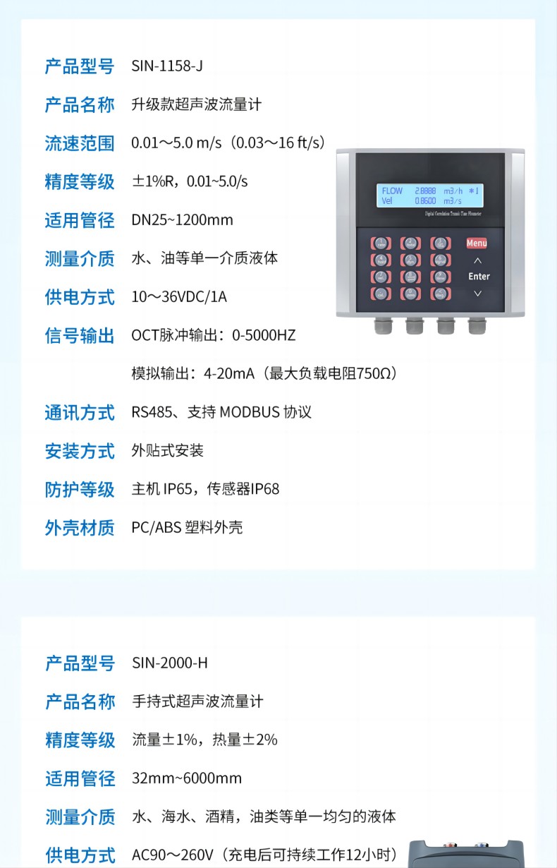 產(chǎn)品名稱(chēng):聯(lián)測(cè)_SIN-2100H超聲波流量計(jì)_便攜/手持_無(wú)雜質(zhì)液體_不破管安裝