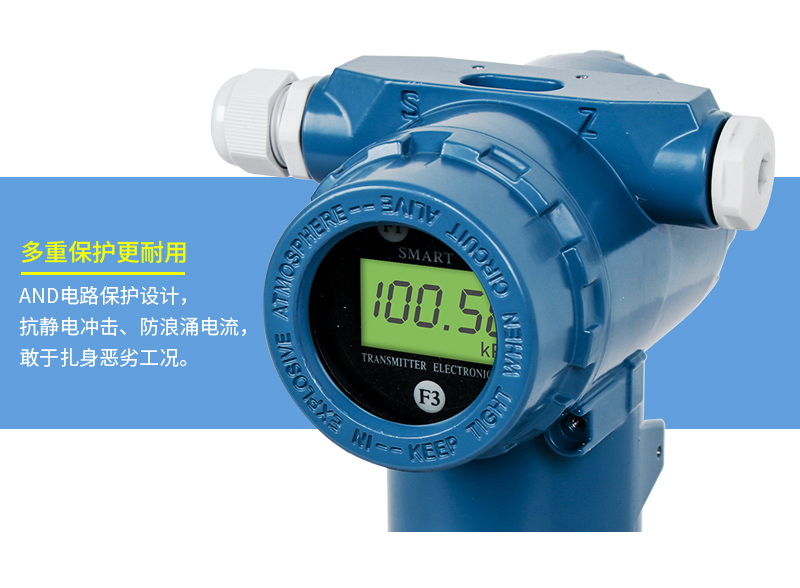 產品描述:SIN-3051系列壓力變送器利用差動電容檢測的原理,當膜片兩側壓力不一致時,使容室中測量膜片產生位移,其位移量與壓力差成正比,通過電路處理將電容變化量轉換成4~20mA的二線制電流或電壓信號,可帶上458協(xié)議或者HART通訊協(xié)議功能。該變送器具有堅固抗振,量程,零點和阻尼現(xiàn)場連續(xù)可調。