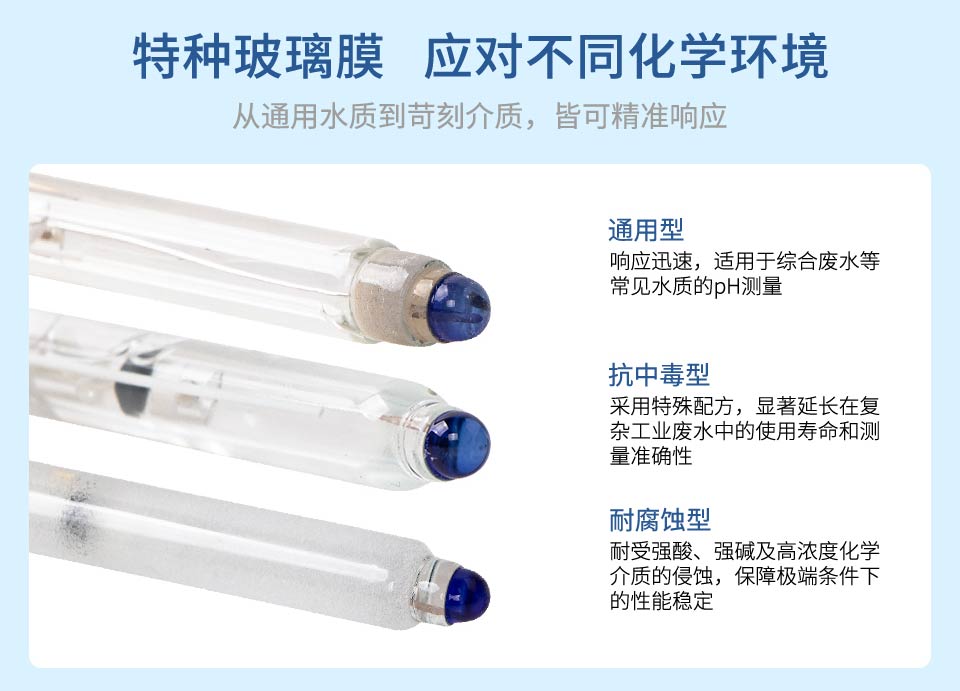 產(chǎn)品描述:pH 玻璃電極是由玻璃指示電極和銀/氯化銀參比電極組合在一起的復(fù)合電極,作為 pH 值測(cè)量傳感器廣泛應(yīng)用于測(cè)量水溶液中的 pH 值。使用場(chǎng)景:特殊環(huán)境,比如化學(xué)在線、強(qiáng)酸強(qiáng)堿環(huán)境。
