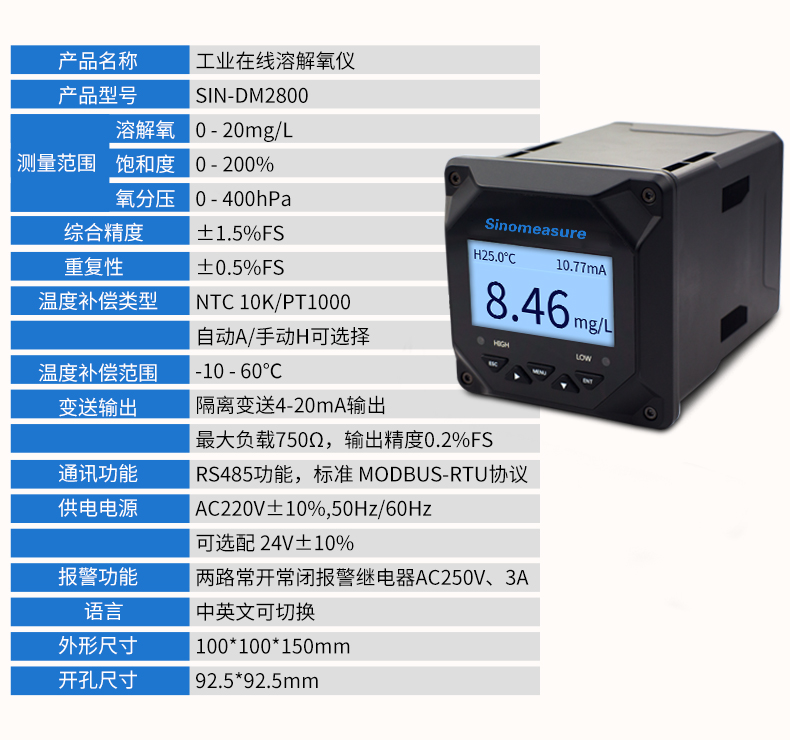 產品描述:原電池法溶解氧在線分析儀是一款智能在線化學分析儀器,是一款廣泛應用于火電、化工化肥、冶金、環保、制藥、生化、食品和自來水等溶液中溶解氧、飽和度和溫度的連續監測的儀表。 連續監測數據通過變送輸出連接記錄儀實現遠傳監控與記錄,也可以連接 RS485 接口通過 Modbus-RTU 協議可方便聯入計算機實現監控與記錄。CN2