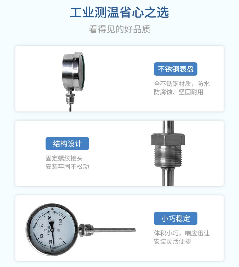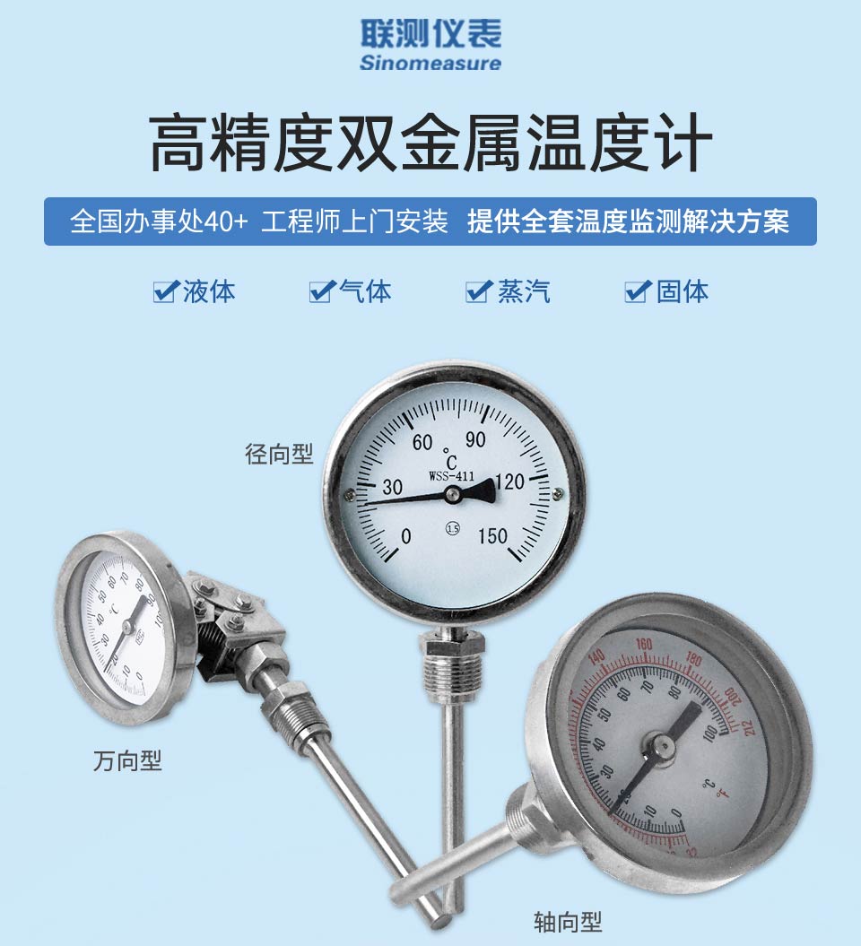 產品描述:杭州聯測儀表專業生產不銹鋼徑向、軸向、萬向工業用雙金屬溫度計可用于窯爐、烤箱、管道,測量氣體、液體、蒸汽的溫度;咨詢熱線:400-185-1718