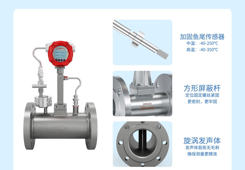 產(chǎn)品描述:LUGB-SIN-A渦街流量?jī)x表廣泛用于供熱公司、熱力公司、化工行業(yè)等行業(yè),對(duì)過(guò)熱蒸汽、飽和蒸汽、壓縮空氣和一般氣體、水和液體的計(jì)量和控制。加厚本體,可有效避免現(xiàn)場(chǎng)管道振動(dòng)帶來(lái)的數(shù)據(jù)波動(dòng)和誤差。多用于高溫場(chǎng)合,例如過(guò)熱蒸汽等工況。