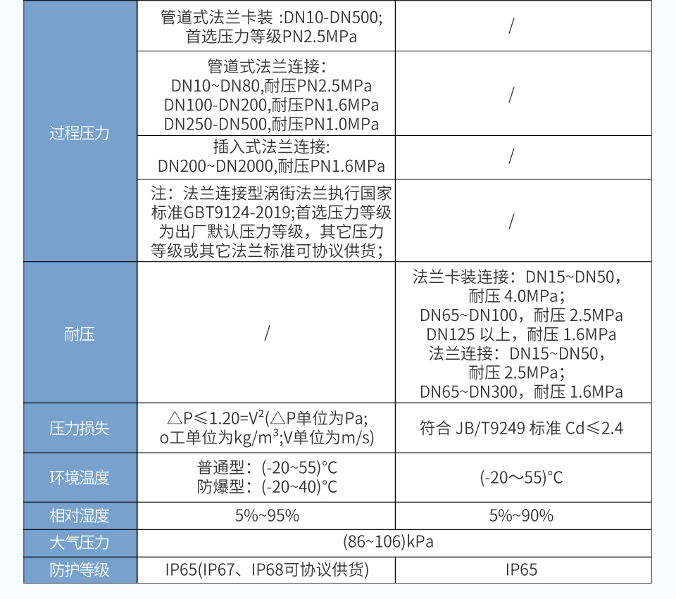 公稱口徑:管道式:DN10~DN500;插入式:DN200~DN2000