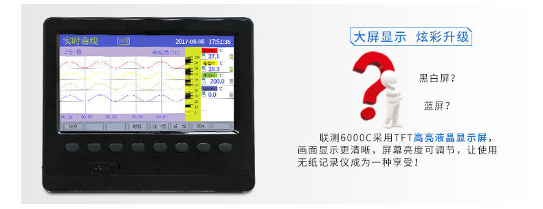 產(chǎn)品名稱:聯(lián)測_SIN-R6000C/4000C_1~48路可選_7英寸寬屏_彩色/藍(lán)屏_記錄溫度/壓力/電流/電壓/頻率多種參數(shù)