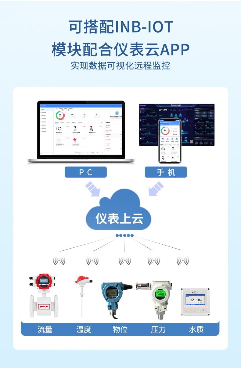 產品描述:無線投入式液位計是基于 4G 無線通訊網絡使液位的測量、變送、上報為一體的低功耗智能儀表。集成高靈敏度液位檢測元件,高精度信號調理電路,低功耗電池電源管理,豐富的 LCD 顯示界面于一體。周期性上報液位測量值、電池電量、信號質量等數據,并且能夠當液位超出設置范圍時及時報警,提前預警故障隱患。本產品適合油田、水利、消防管網、自來水管網、城市供熱管網等智慧城市應用場景。