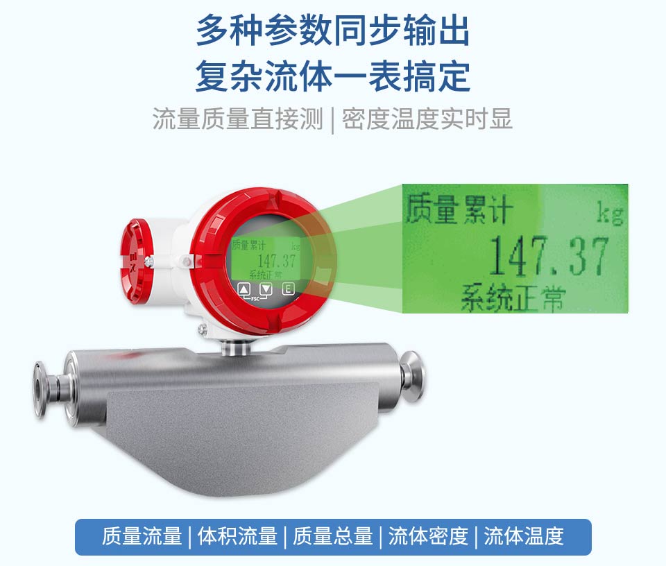 產品描述:科里奧利質量流量計是根據科里奧利力原理開發的一種新型的流量測量儀表,可直接測量封閉管道內流體的質量流量、介質的密度和溫度。可廣泛應用于化工、石油、食品、制藥、造紙等行業。